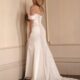 - Fit-and-flare silhouette with chapel train